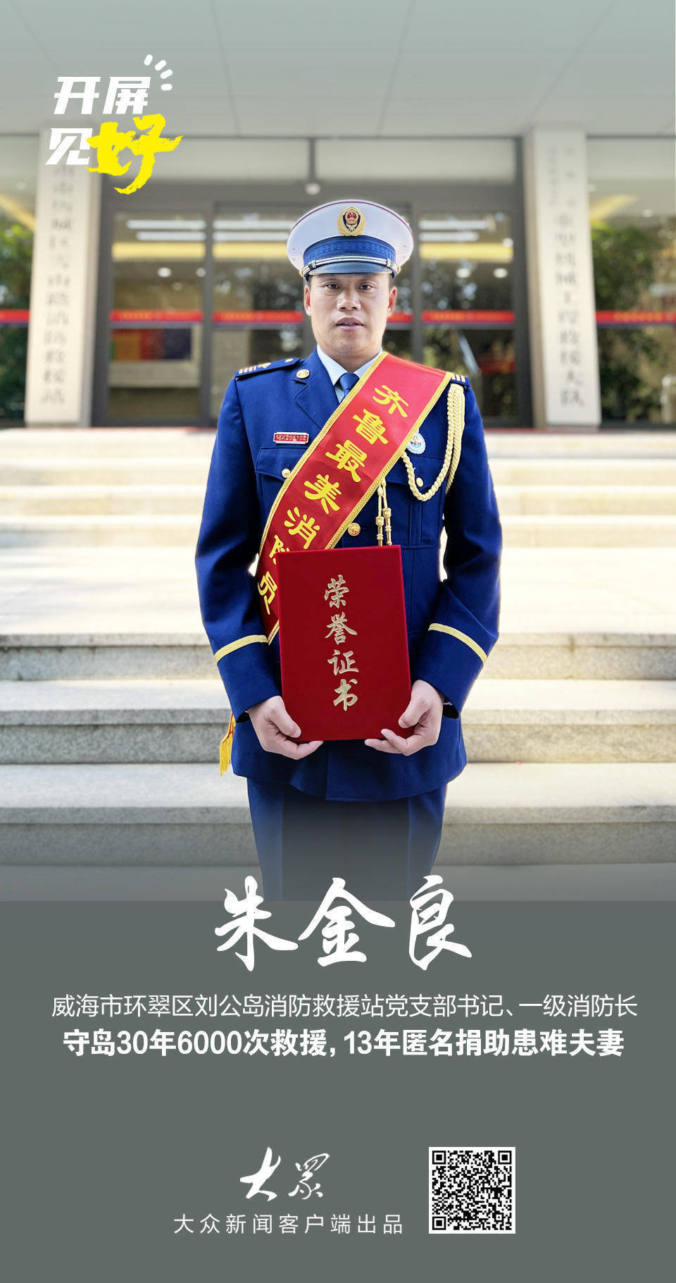 从1995年,18岁的朱金良穿上“火焰蓝”起,30年来,他累计参加火灾扑救、抢险救援6000多次,救助群众200余人,荣立三等功3次。如今,他已成长为威海市环翠区刘公岛消防救援站党支部书记、一级消防长。同时,荣获全国公安消防部队优秀共产党员、消防安保先进个人、山东好人、威海市道德模范等诸多荣誉。